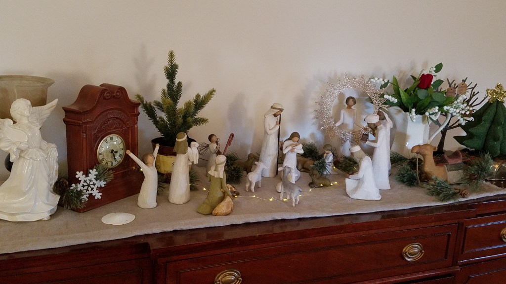 The Blue Willow and Memory Lane dishes are a daily staple at mealtimes. The Blue Willow was pulled from the hutch when I saw that our original dishes had decreased in number. Beforehand, the Blue Willow were removed from their decorative place on special occasions.